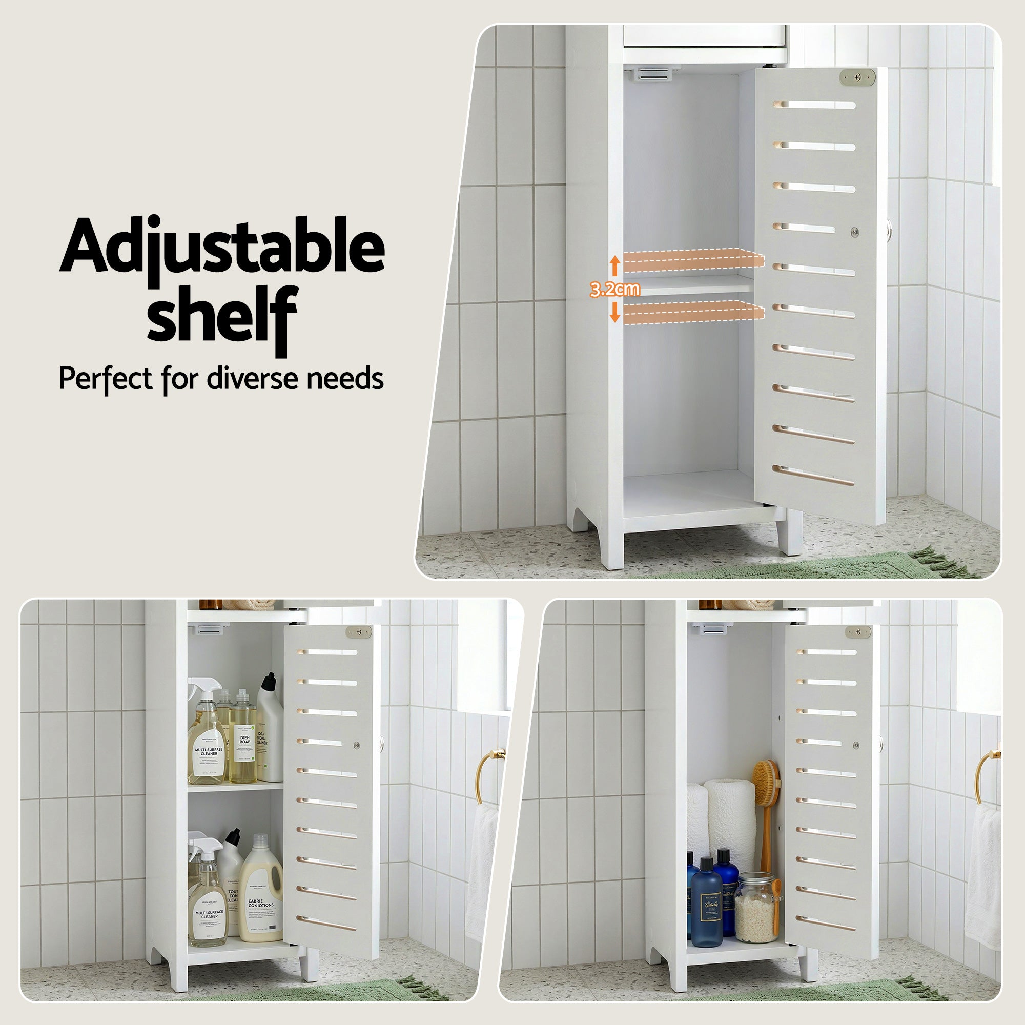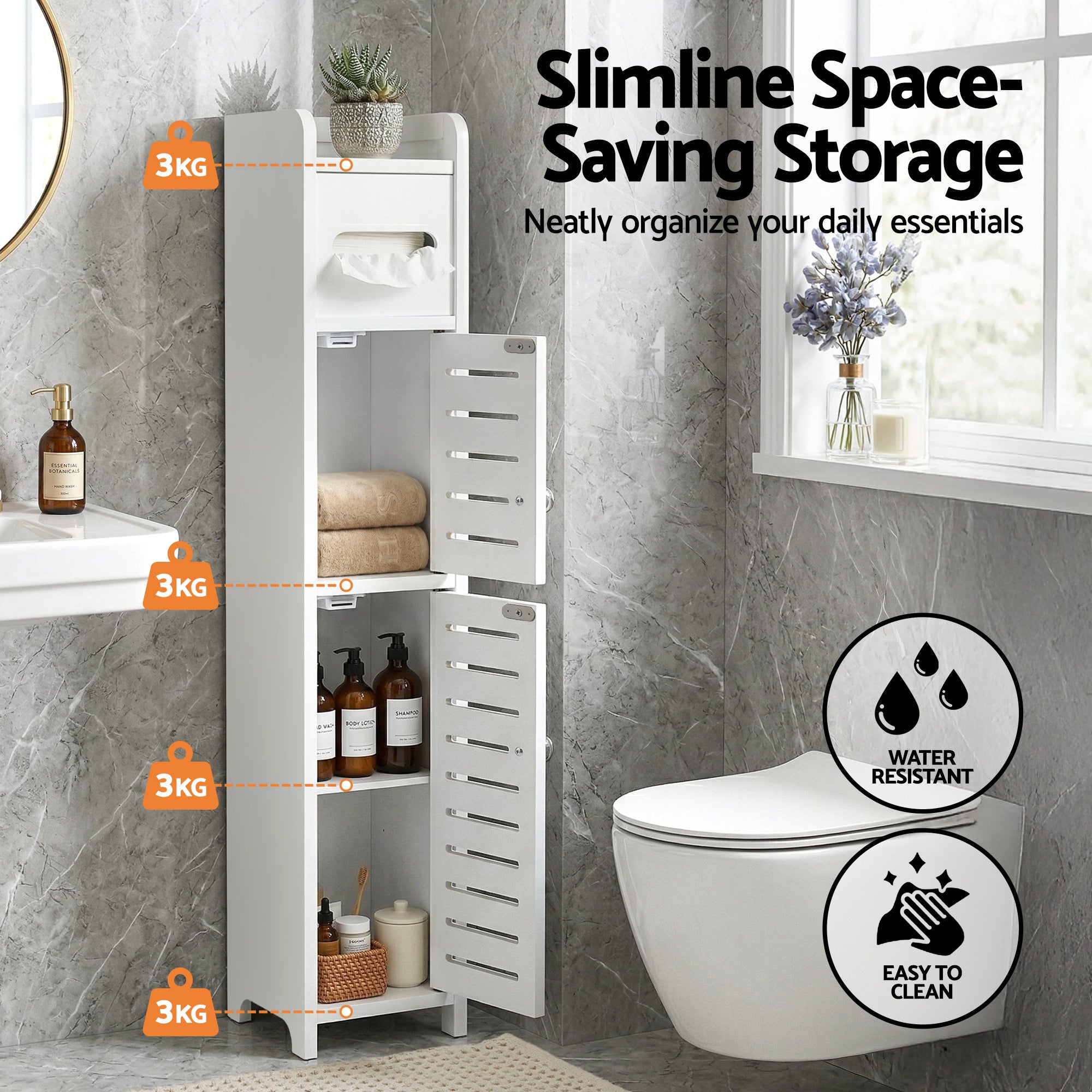 Transform your home into a tidy sanctuary today! This 3-Tier Bathroom Storage Cabinet is the ultimate space saving solution for modern Australian homes. As a Slim Bathroom Cupboard, it fits perfectly into narrow gaps, providing ample room for essentials without cluttering the floor.