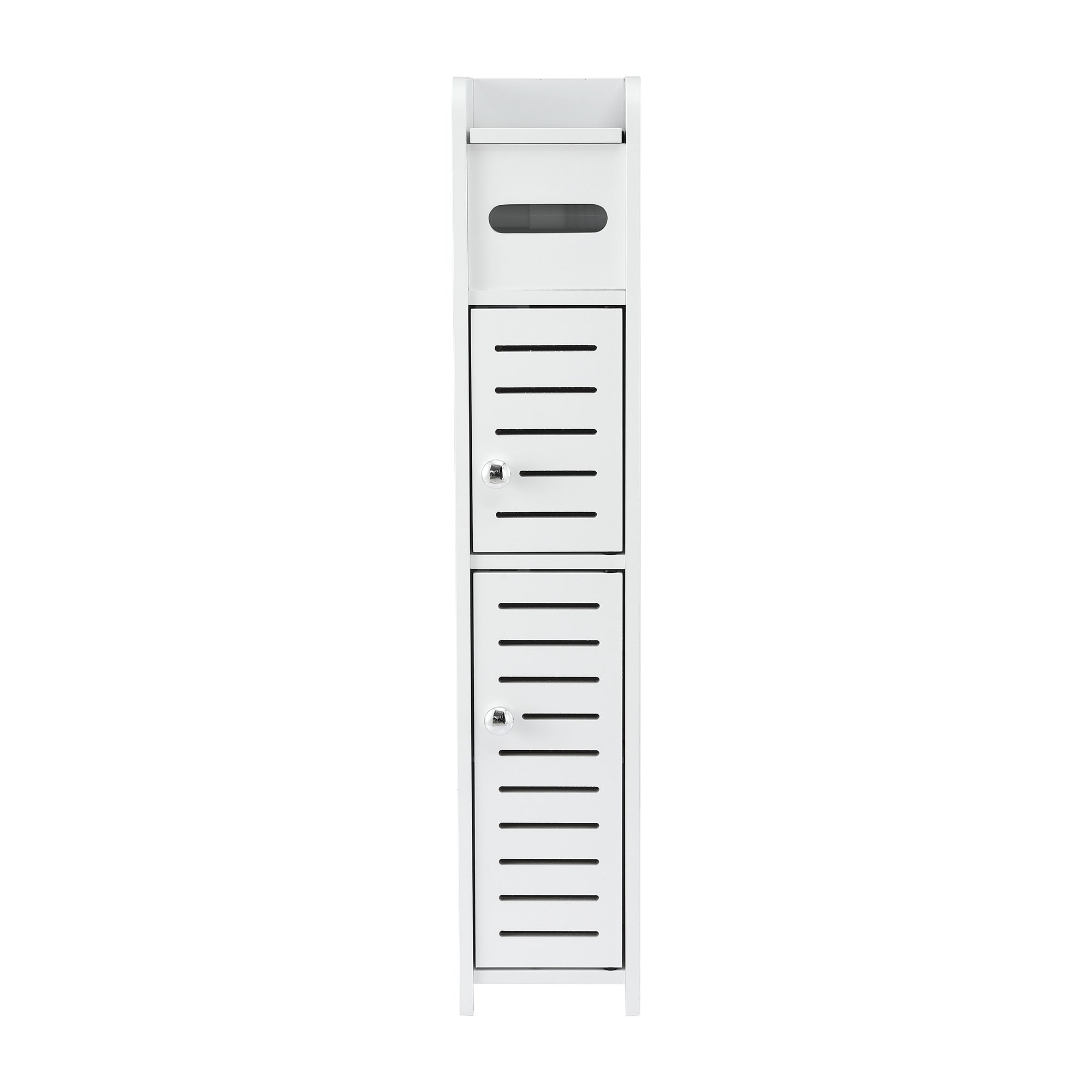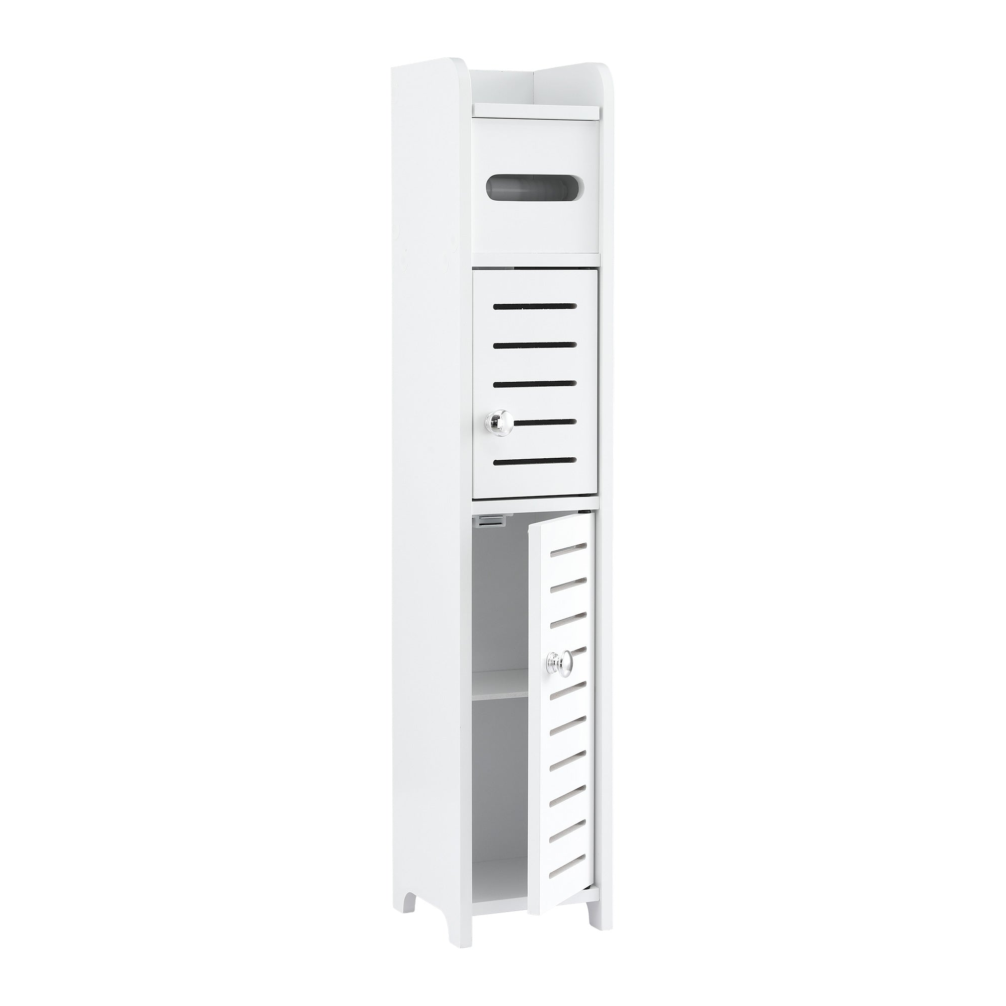 This Narrow Storage Unit features a customisable adjustable shelf and an integrated toilet roll cabinet for daily convenience. The elegant louver door design ensures ventilation, while the sturdy Free Standing Floor Cabinet build includes an anti-tip kit for family safety. It's the ideal Bathroom Organizer that combines durability with a sleek, easy-to-clean finish.