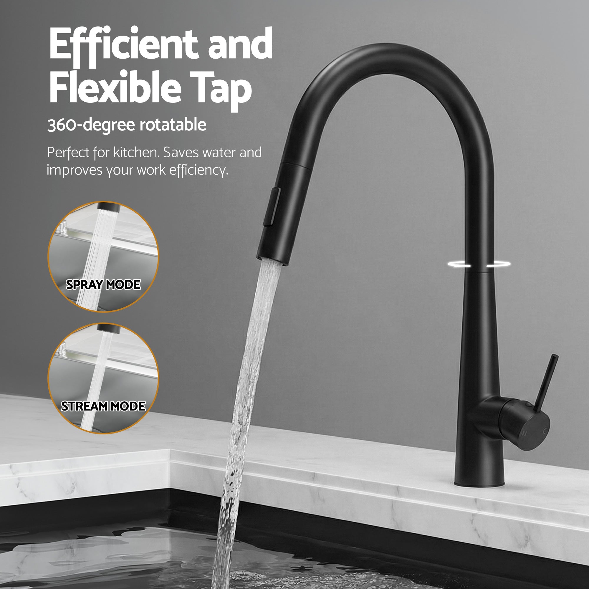 The pull-out mixer tap features a 35mm drip-free ceramic cartridge, 360Β° swivel, and button spray. Fits 35-38mm tap holes.