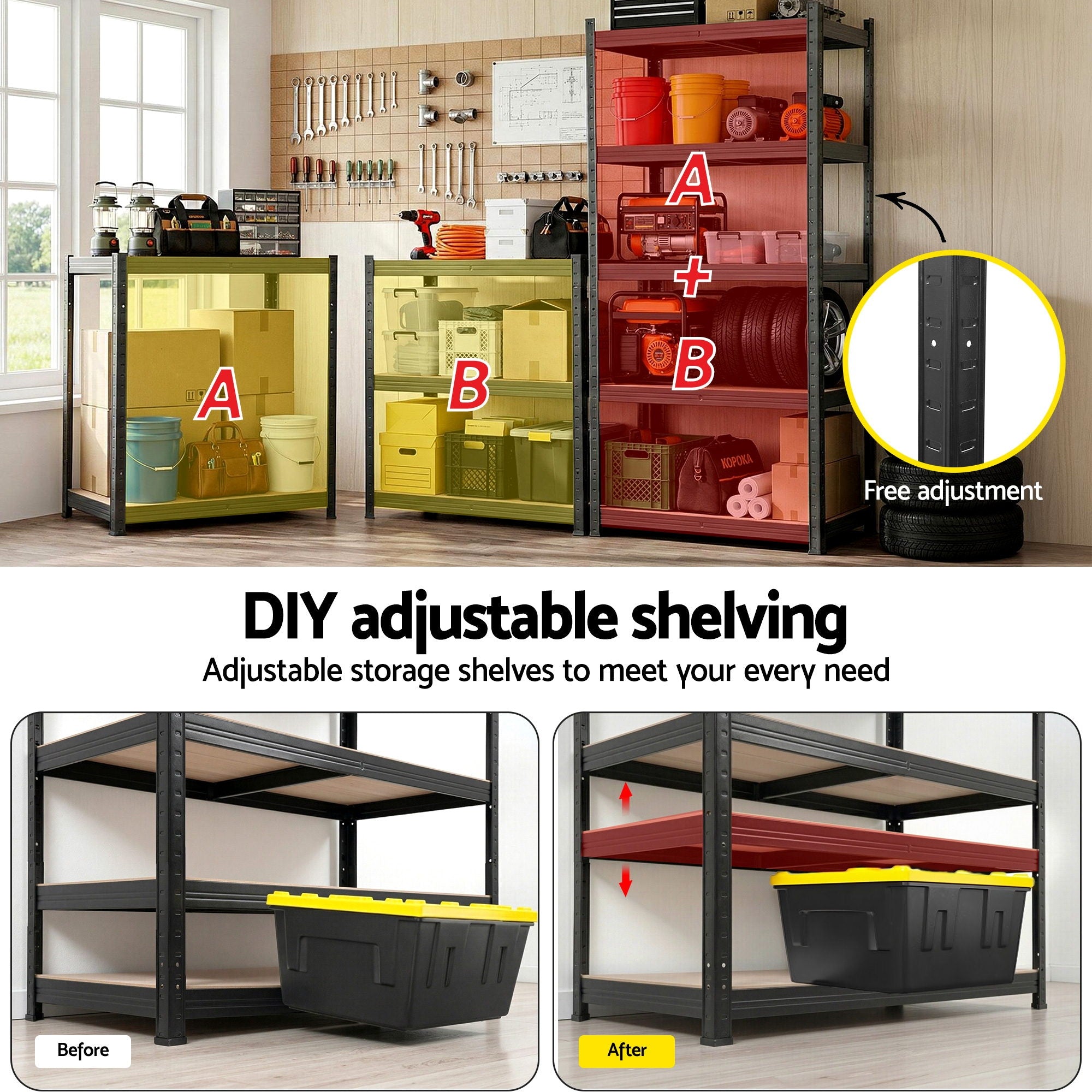 Maximise your storage efficiency with the Giantz 5-Tier Garage Shelving Unit. Designed for heavy-duty application in a compact footprint (80cm x 40cm), this rack punches above its weight with an incredible 1250kg total capacity. Industrial Strength Unlike standard shelves, each tier on this Giantz unit supports up to 250kg. The powder-coated steel frame is reinforced with middle supporting beams, ensuring the solid MDF boards remain flat and stable even when fully loaded with heavy tools or equipment. Flexible & Modular Whether you need a vertical storage tower or a sturdy workbench, the boltless design makes configuration easy. Rust-resistant and fully adjustable, it is the ultimate durable storage solution for Australian garages and workshops.