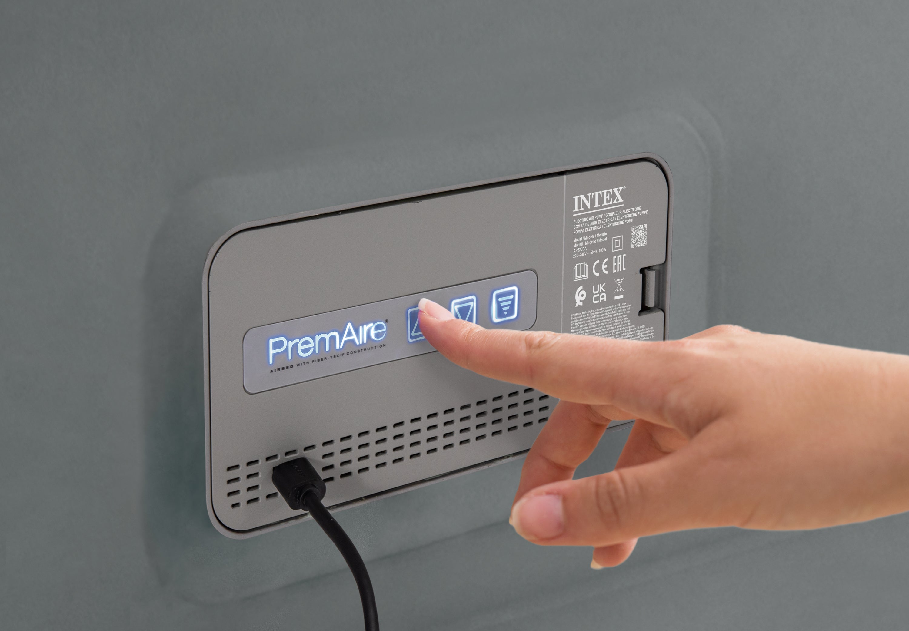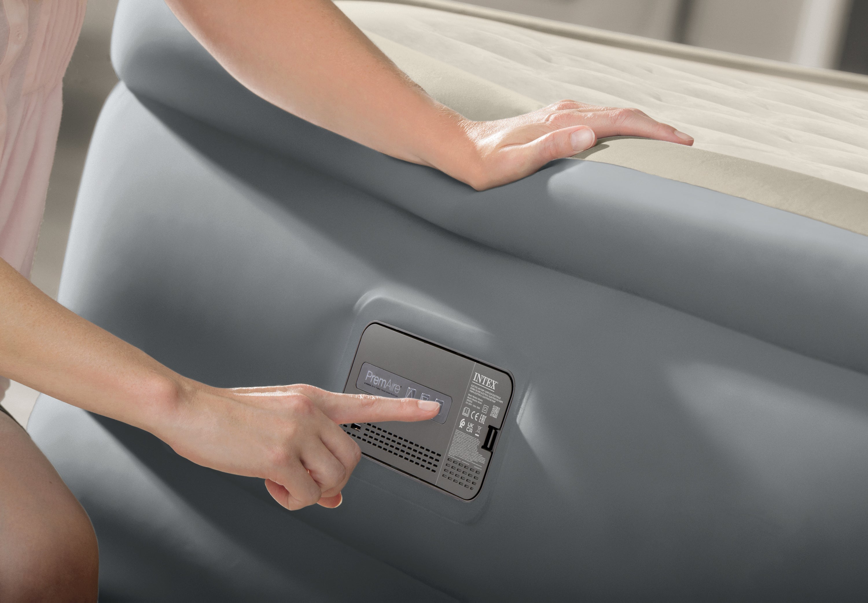 PremAire is the advanced line of luxury airbeds by Intex.�These premium airbeds use patented Fiber-Tech Technology�to provide unrivaled structural strength, enhanced by heavy-duty,�puncture resistant 2-ply laminated side walls for lasting durability.Each PremAire bed features a soft, 2-layer comfort top that meets�the contours of the body for enhanced relaxation, complemented by�an elevated bed height that makes it easy to get in and out of bed.Ensuring the utmost convenience, these beds feature a powerful�internal pump that makes inflation and deflation quick and easy.�Our revolutionary PremAire mattresses offer the perfect combination�of luxurious comfort and best-in-class durability.Details: