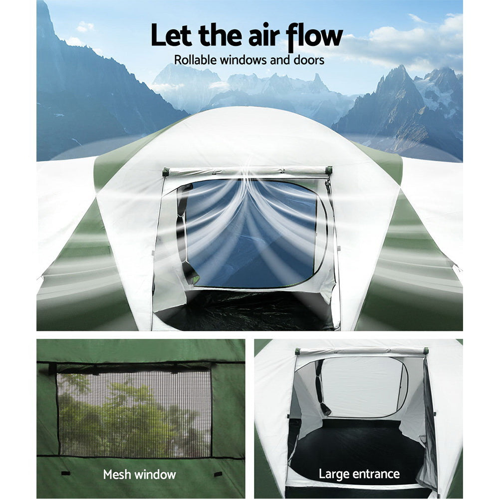 Setting up the Weisshorn 12-person Dome Tent is easy with all the necessary accessories including ropes and pegs that come with your purchase. All the contents are stored in a convenient carry bag to help you load up for a wonderful camping trip thatβs anything but memorable and comfortable.