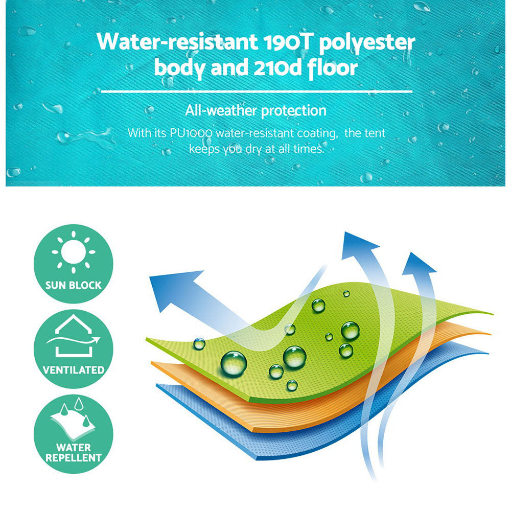 On the beach, in the forest, up in the hills, roaming through the outback or just hanging out in the backyard, our Weisshorn Pop-Up Tent is your handy shelter in the open anytime of the year. With ample room for three persons, the pop-up tent features a heavy-duty 190T PU material construction with water and UV resistance and has a silver-coated interior that provides more light and reduces heat accumulation. Setting it up is super-easy β just throw it onto the ground to let it pop up by itself, then anchor to the ground with included pegs. Packing up is just as simple as folding the tent and storing it neatly into the carry bag with the pegs. Whatever your passion, take the Weisshorn Pop-Up Tent with you and have some memorable moments to treasure under the skies.